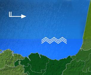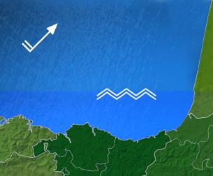 Viento del oeste con fuerza 6 a 7 e intervalos de fuerza 8 durante la primera mitad del día. Amainará por la tarde y se fijará del suroeste por la noche con fuerza 3. Durante la primera mitad del día originará mar gruesa o mar muy gruesa, con áreas de mar arbolada. Mar de fondo del noroeste puede rondar los 4-5 m de altura.