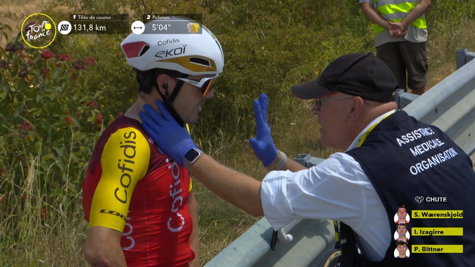 El del Cofidis ha sufrido una caída junto con otros tres ciclistas que, afortunadamente, no ha tenido mayores consecuencias y tras cambiar de bicicleta se ha reintegrado en la carrera.