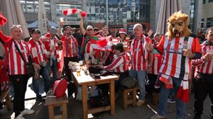 Aficionados del Athletic y del Borussia Dortmund disfrutan...