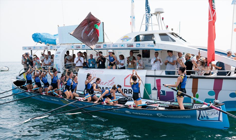 Ambas traineras han protagonizado un apretado pulso que se ha decidido en los últimos 300 metros, con el rreón final de las de Nerea Pérez. Las donostiarras, por su parte, han podido alzar la Corona que se adjudicaron ya en la jornada anterior.