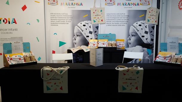 Los productos solidarios de EiTB Maratoia estarán a la venta los días 8 y 9 de noviembre en Ficoba, en la 13ª feria de la carrera. El buff también se podrá adquirir en tiendas Forum.