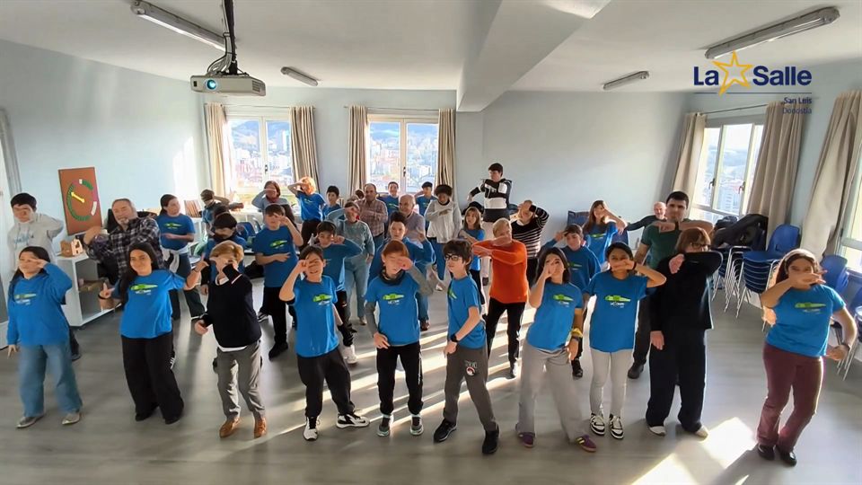 Alumnos de 6º de primaria del colegio La Salle San Luis de Donostia bailan "Euskal Rock n'roll" junto a sus abuelos y abuelas, uniendose al reto solidari de EITB Maratoia.