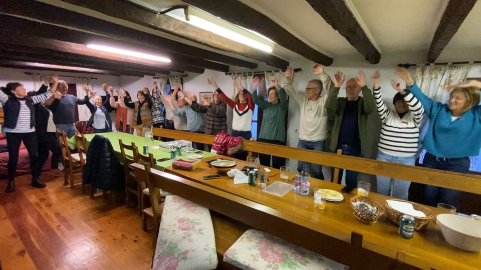 ¡Cualquier lugar es apropiado si es para una buena causa! Este grupo de amigos de Azkoitia ha bailado en una comida el tema "Aukera Berriak" de ETS y con él se han unido al EITB Maratoia 2023 a favor de la investigación del cáncer.