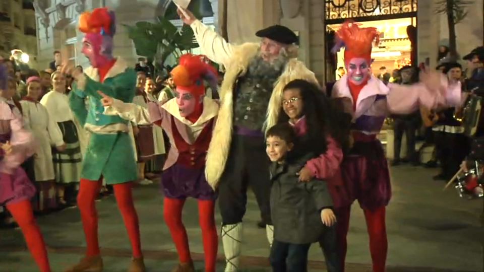 Miles de personas han salido esta tarde a la calle en Bilbao para ver a Olentzero y Mari Domingi. Los dos protagonistas han recorrido las calles de la villa en un colorido desfile muy bien acompañados y han salido a saludar desde el balcón del Arriaga.