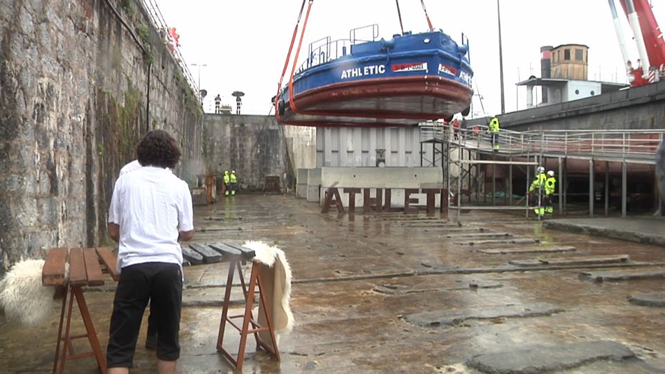 La gabarra ha vuelto este lunes al dique seco del Museo Marítimo de Bilbao-Itsasmuseum, tras surcar la ría desde Getxo hasta el Ayuntamiento de Bilbao esta pasado jueves para la celebración del 25º título de la Copa del Rey conquistada por el Athletic Club de Bilbao.