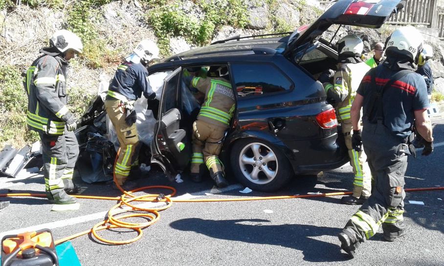 Dos personas han quedado atrapadas dentro de sus vehículos tras chocar frontalmente en la carretera A-625, a su paso por Llodio.
