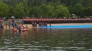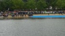 Imágenes del camión pluma que ha volcado en el puente de Castilla