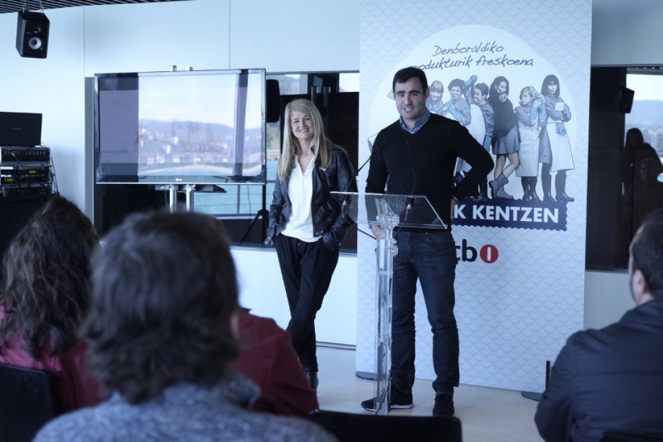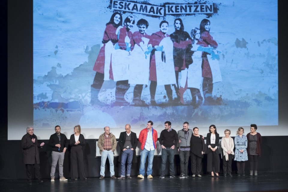 La nueva teleserie 'Eskamak Kentzen' se ha presentado ante la presa con presencia de algunos de sus actores, los creadores y directores y responsables de las productoras.