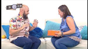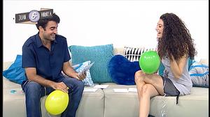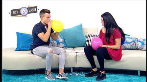 Andrea y Juan, muertos de risa con la voz de él al inhalar helio