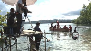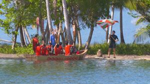 Así se preparó el amplio equipo de trabajo de "El Conquistador del Caribe" para el juego de inmunidad de transportar en cayuco y así se grabó el mismo.