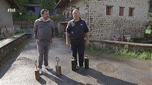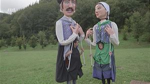 Pilar Aranburu es la única mujer de Areatza (Bizkaia) que maneja los gigantes articulados. Juntos han pasado un buen rato, al meterse dentro de Bartolo, patrón del pueblo, y Maddalen, su amiga.