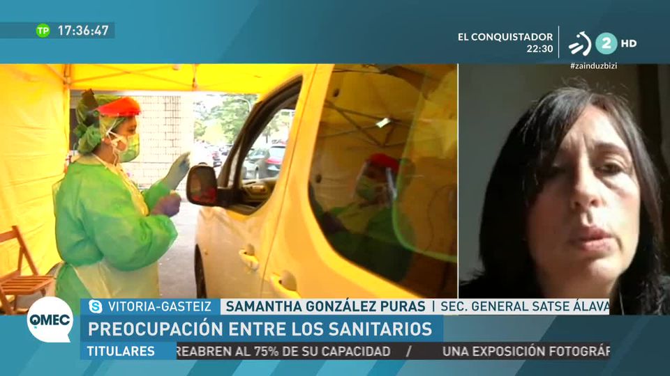 Samantha González Puras, secretaria general del sindicato de enfermería SATSE Álava, habla sobre contagios de COVID-19 en los hospitales de Basurto y Txagorritxu. Explica que hay material pero no se usa.