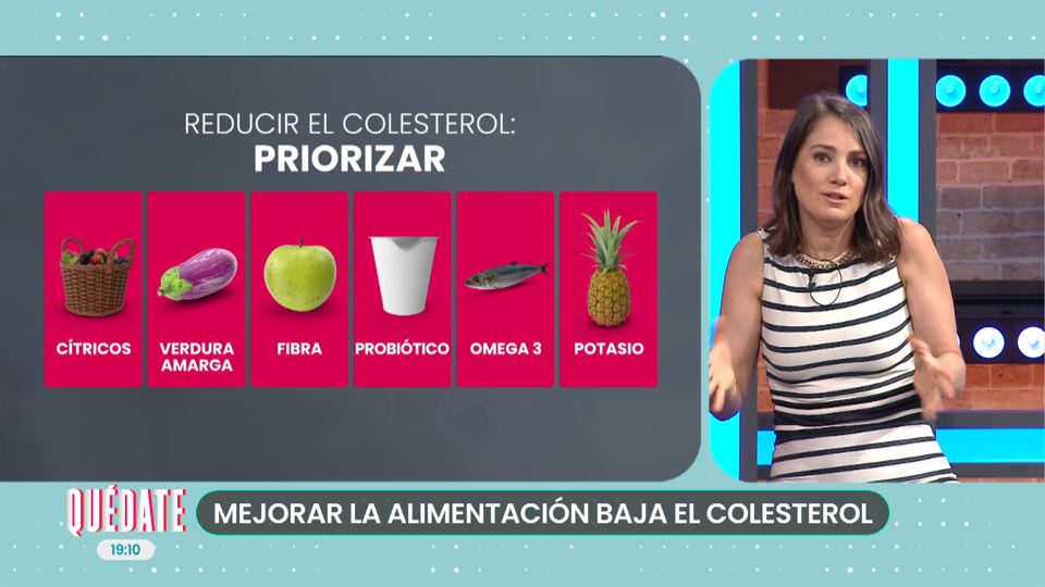La nutricionista Nerea Segura nos da claves para que podamos reducir nuestros niveles de colesterol de manera natural. Hay que priorizar consumir verdura, fruta, fibra, probióticos, alimentos con omega 3 y potasio. Hay que evitar frituras, sal, ultra procesados y grasa saturada.