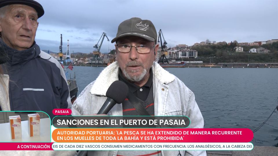 En Pasaia queda prohibida la pesca recreativa. Adelino Sayans, lleva 55 años pescando en el puerto y se queja de la medida que se va a implantar. Denuncian que esta medida ha sido forzada por la gente que viene a pescar sin escrúpulos.