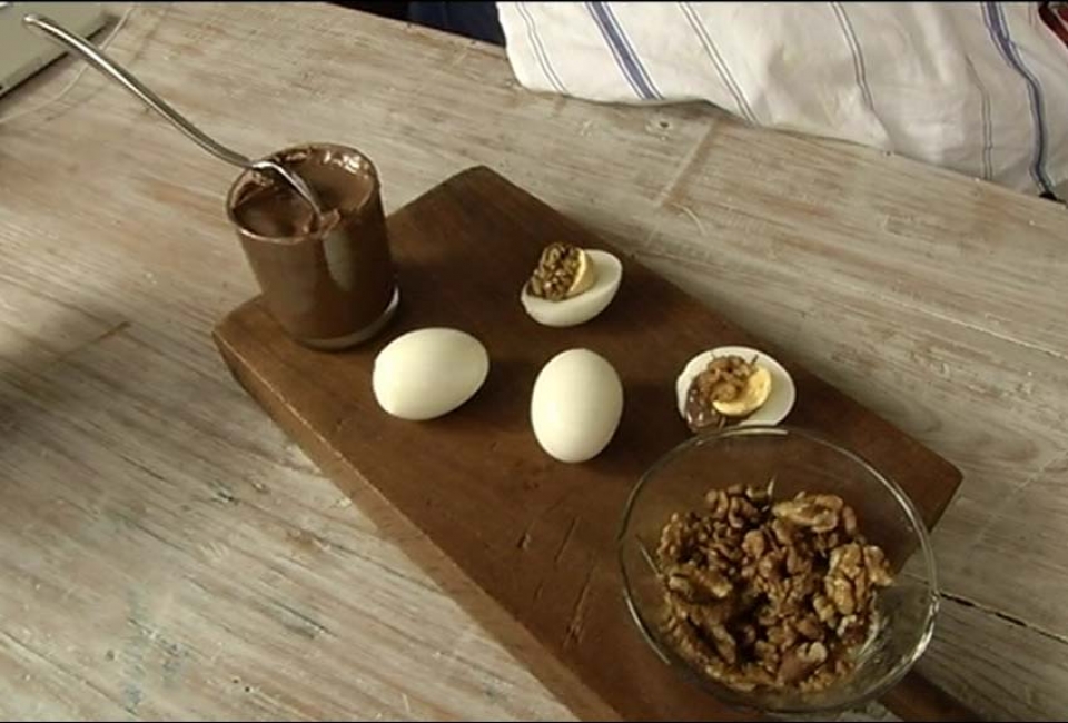 Huevo duro relleno de nocilla y nueces