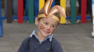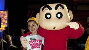 Shin Chan ume bihurria Hiru3 Jaian izan zen eta argazkiak atera zituen Hiru3 komunitateko haurrekin.