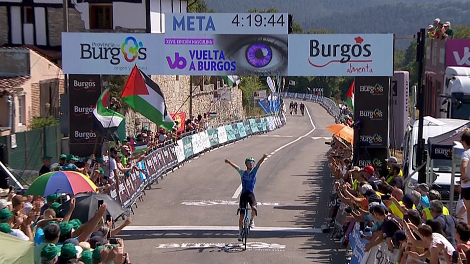 Helmugarako kilometro bat baino gutxiago falta zenean, Léo Bisiauxek aurrea hartu du, gainerako txirrindulariak ezustean harrapatuta. Burgosko Itzuliaren hirugarren etapa irabazi du, Giulio Ciccone eta Giulio Pellizzari geratu dira atzetik.