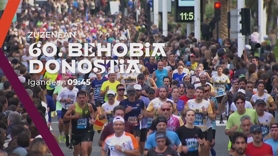 Bizi ezazu 30.000 korrikalari biltzen dituen lasterketa, zuzenean. Ez ezazu galdu Behobia-Donostia lasterketaren 60. edizio ikusgarria, igandean, zuzenean, 09:45etik aurrera, ETB1en eta eitb.eus-en.