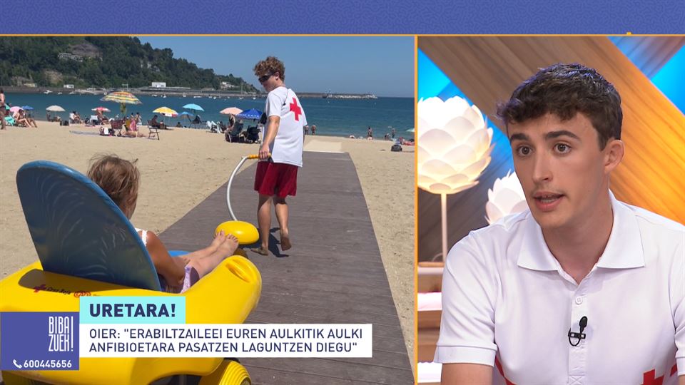 'Hondartzak denontzat' ekimenaz hitz egin du Oier Rojo Gurutze Gorriko langileak. Doako zerbitzua da eta sorosleek laguntza eskaintzen die hondartzan ibiltzeko eta uretara sartzeko arazoak dituzten pertsonei. Getariako eta eta Hondarribiko hondatzetara gerturatzen den pertsona orori laguntzen diote.