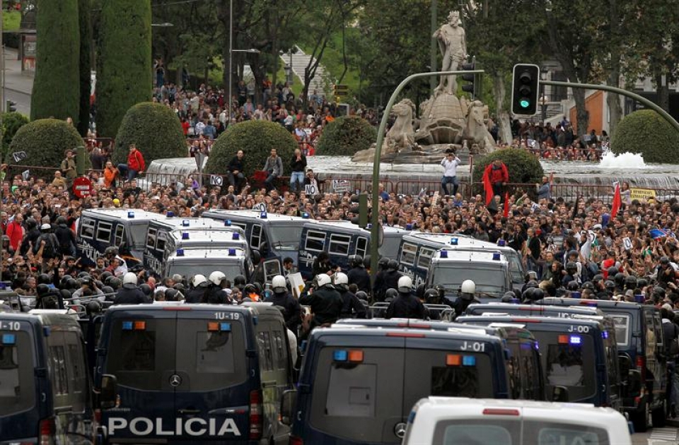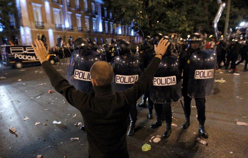 Une manifestation contre l'austérité organisée mardi soir devant le parlement espagnol à Madrid s'est transformée en champ de bataille.